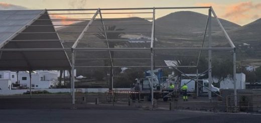 CC critica la gestión municipal en el muro que construyen en el recinto ferial de Uga