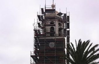 La instalación del andamiaje para la ejecución de las obras de restauración de la torre de la Villa de Teguise despertó ciertas susceptibilidades vecinales durante las jornadas de fuerte viento...