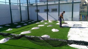 Están renovando estos días el pavimento de las dos canchas de pádel de Las Salinas, donde se ha cambiado el antiguo césped artificial por otro artificial de nueva generación, en...