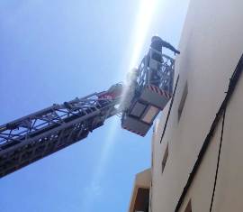 Los bomberos del Consorcio de Seguridad y Emergencias de Lanzarote intervenían en la jornada de este pasado jueves en la calle Alonso Cano, en Arrecife, para sanear un balcón de...