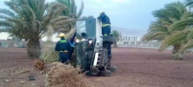En la mañana de este jueves se salía de la vía y volcaba en la Avenida de Femés, en Playa Blanca, un vehículo cuyos ocupantes abandonaron el lugar antes de...