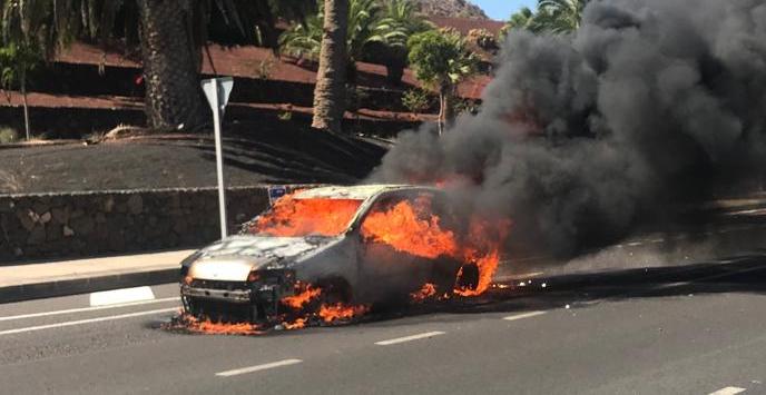 Al mediodía de hoy se calcinaba por completo un vehículo mientras circulaba por la calle Fisco, vía que atraviesa el pueblo de Yaiza. La conductora del mismo se vio sorprendida al...