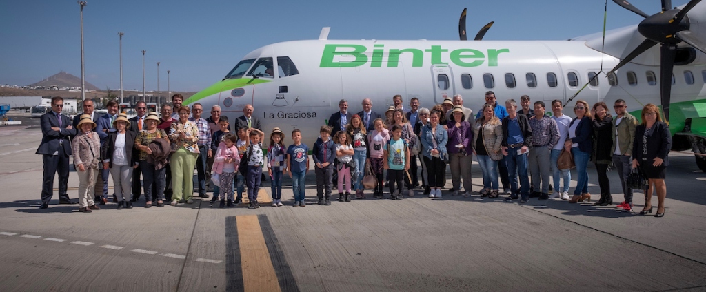 El Aeropuerto de Lanzarote acogía este miércoles el acto de imposición de nombre del avión “La Graciosa”, de la compañía Binter Canarias, celebrado con un vuelo especial que partió desde...