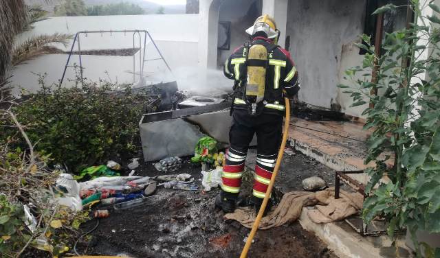 Los bomberos del Parque Sur del Consorcio de Seguridad y Emergencias de Lanzarote intervenían este martes para sofocar el incendio de varios electrodomésticos situados en la terraza de una vivienda,...