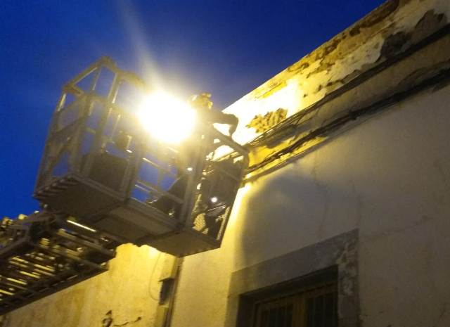 En la noche de ayer martes, los bomberos lanzaroteños intervenían en la calle Democracia de Arrecife para sanear parte de la fachada de una vivienda, tras producirse la caída a...