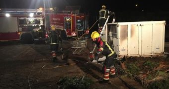 Durante la pasada madrugada los bomberos extinguían en la calle Donante de Sangre, en Arrecife, el incendio ocurrido en el interior de una bandeja metálica llena de poda. Para su...