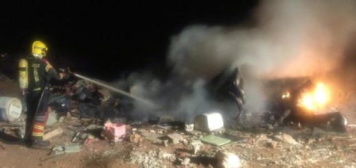 Los equipos de extinción lanzaroteños intervenían a última hora de la noche de ayer viernes para sofocar el incendio ocurrido a la altura del antiguo vertedero de Argana, en Arrecife.