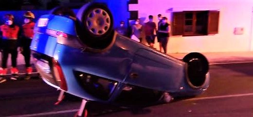 Vuelco de un vehículo en la Avenida de Los Volcanes de Tinajo