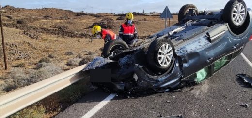 Uno de los dos vehículos que se vieron implicados en el siniestro quedó volcado en la calzada. Un hombre fue atendido por el Servicio de Urgencias Canario de una cervicalgia de carácter leve.