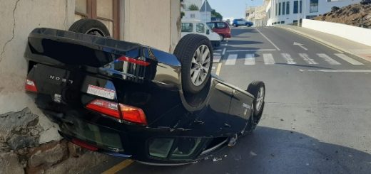 Vuelco de un vehículo en Puerto del Carmen tras chocar contra un árbol