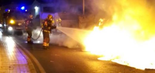 Los bomberos lanzaroteños sofocaban anoche el incendio ocurrido en la calle Nicaragua, donde ardieron por completo cuatro contenedores de basura y uno de reciclado.