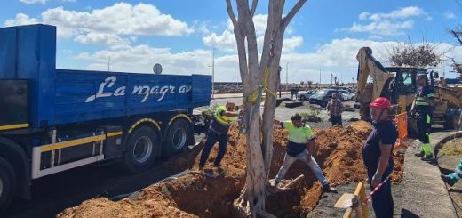 El Ayuntamiento presidido por Astrid Pérez ha iniciado las esperadas obras de remodelación de la Plaza Pedro Alcántara. Las labores del trasplantado de estos ficus las acomete Lanzagrava.