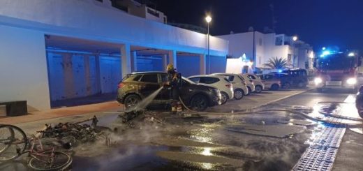De madrugada ardían por completo dos contenedores cerca de la calle Teide, en Puerto del Carmen (Tías). También resultó afectado un vehículo debido a la radiación de calor y las llamas.