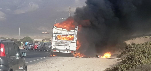 Queda calcinada una autocaravana que ardió junto a la Playa de Famara