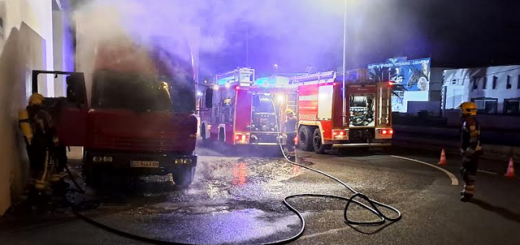 Los bomberos extinguían en la calle Crispín Corujo de la ciudad de Arrecife el fuego en el interior de un camión frigorífico. El suceso de producía sobre las 23:00 horas.