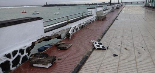 Desde la pasada madrugada, el fuerte oleaje y el viento han provocado desperfectos en el frente litoral. Zonas peatonales junto al Parque Temático y el Parque José Ramírez Cerdá han sufrido daños en sus muros de piedra volcánica.