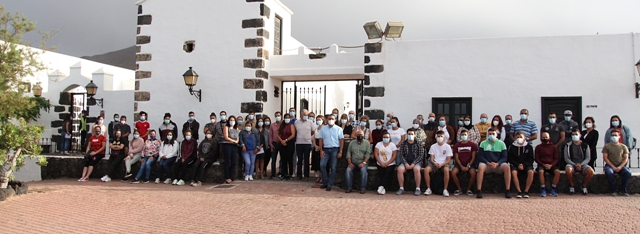 El alcalde de Tías, José Juan Cruz, acompañado de la concejala de Empleo, Carmen Gloria Rodríguez, y de otros concejales del Ayuntamiento, dio la bienvenida a los alumnos trabajadores y al equipo coordinador y directivo.