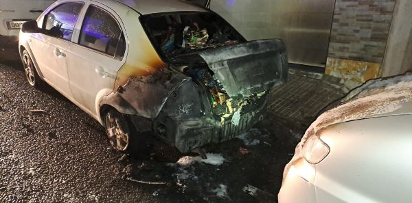Arden dos vehículos estacionados en Argana Alta durante la madrugada