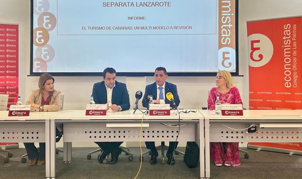 El acto contó con la participación del decano del Colegio de Economistas de Las Palmas, Alcibiades Trancho Lemes; la directora del estudio, Rosa Rodríguez Díaz; la consejera de Hacienda y Contratación del Cabildo de Lanzarote, María Jesús Tovar Pérez; y el presidente de la Cámara de Lanzarote y La Graciosa, José Valle Martínez.