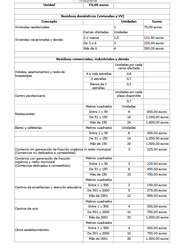La actualización de la norma fiscal ha supuesto una subida generalizada en el importe a abonar por vecinos, negocios y demás sujetos pasivos del municipio. En el caso de las viviendas, el incremento es notable: un hogar tipo que anteriormente pagaba 56,92 euros ha pasado a abonar 75 euros anuales. La subida del recibo de basura para un hogar tipo en Teguise ha sido, por tanto, de un 31,75%.