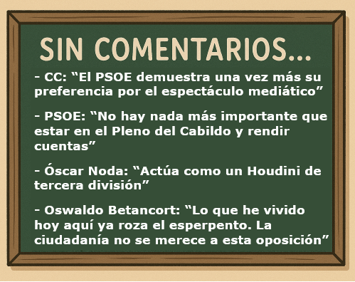 El grupo de gobierno, integrado por Coalición Canaria, Partido Popular y el consejero del Grupo Mixto, Armando Santana, reprochó la actitud de los consejeros del PSOE, a quienes acusó de una “falta de respeto” hacia la vicepresidenta insular, María Jesús Tovar, que presidía la sesión en ausencia temporal del presidente. Consideran que el gesto supone una desconsideración institucional hacia quien ejerce “con plena legitimidad” las funciones de dirección del pleno.