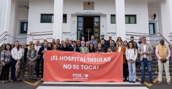 Cargos públicos del PSOE de Lanzarote se concentraron este martes frente al Hospital Insular para exigir su permanencia y denunciar cualquier intento de desmantelamiento encubierto de este centro sanitario clave para la isla.