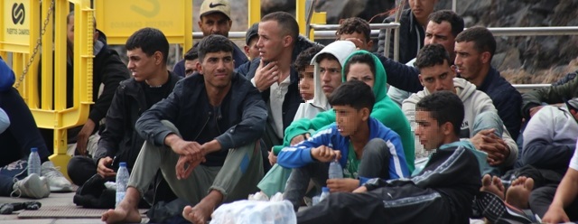 Después de ser divisados a pocos metros de la costa de Órzola (Haría-Lanzarote), esta mañana de martes eran escoltados hasta el muelle norteño el medio centenar de jóvenes inmigrantes que llegaron por sus medios hasta el norte insular, a bordo de una embarcación tipo patera.