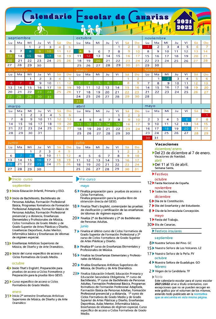La Consejería de Educación del Gobierno de Canarias recoge en el calendario escolar del Archipiélago para el curso 2021/2022 las fechas claves durante el desarrollo de la próxima temporada de enseñanzas en las islas.