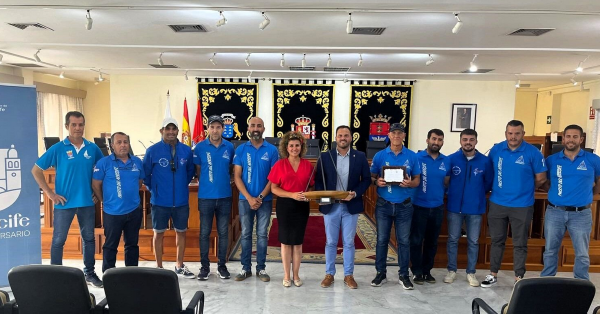 Yonathan de León, en nombre de la institución municipal, hizo entrega de una placa de reconocimiento por este nuevo triunfo, y agradeció que mantengan viva una tradición deportiva vinculada a la náutica en la isla de Lanzarote, donde Arrecife ha sido la cuna de grandes veleros, y regatistas, al nacer junto al Chaco de San Ginés como puerto, ciudad y capital.