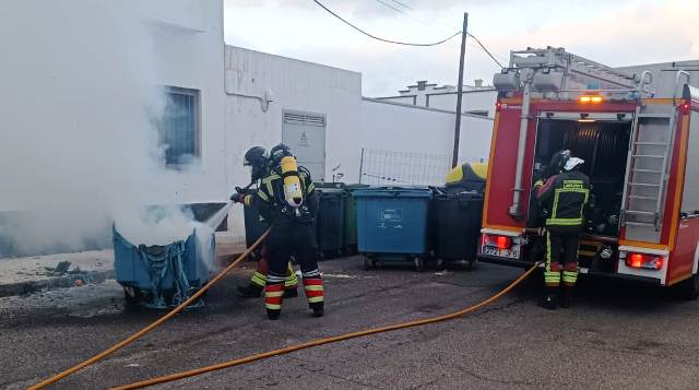 Los equipos de extinción lanzaroteños intervenían en las pasadas horas para sofocar el incendio que calcinaba un contenedor en una calle de Arrecife, en otro fuego donde ardía basura acumulada en un edificio capitalino, y en un tercero donde se incendiaban dos contenedores en Nazaret.