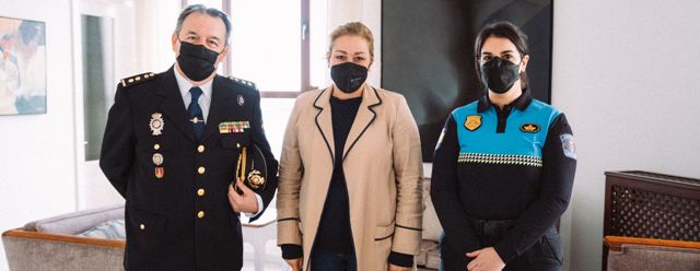 La alcaldesa de Arrecife, Astrid Pérez, acompañada del concejal de Sanidad, Echedey Eugenio, recibió durante la jornada de este miércoles al nuevo comisario de la Policía Nacional en Lanzarote, José Luis Gutiérrez Redondo.