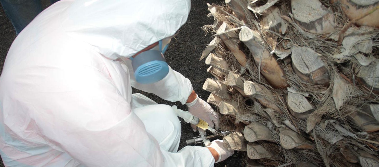 La endoterapia una de las medidas más extendidas en la Isla para control ar la plaga, aunque algunos ayuntamientos, como Tías y ahora Yaiza, han utilizado el tema también como arma política.