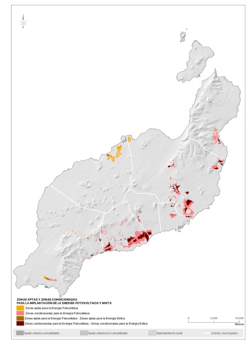 El acuerdo establece un mapa de 3.163,89 hectáreas aptas para la implantación de proyectos renovables en Lanzarote y La Graciosa (3,75 % del territorio insular), aunque la ocupación real necesaria para cumplir los objetivos de descarbonización a 2030 se estima en apenas el 0,23 %. Esta diferencia refleja el enfoque prudente y estratégico del protocolo: identificar potencial sin comprometer el equilibrio territorial.