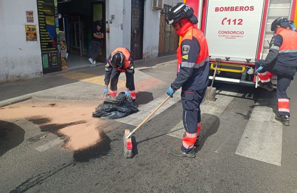 Una vez en el servicio, observaron que había una mancha de aceite ocasionada por un accidente de tráfico. Y realizaron la limpieza de la calzada con ayuda de sepiolita.