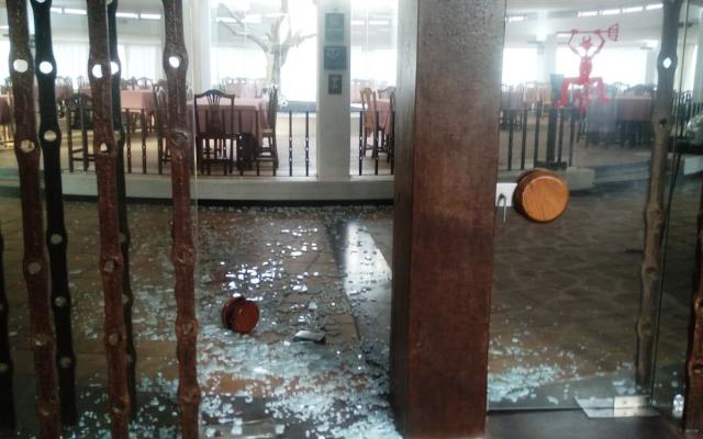 Otra más, han tenido que romperse las cristaleras para desalojar el resturante el parque nacional de Timanfaya.