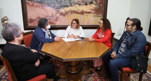 La presidenta del Parlamento de Canarias, Astrid Pérez, se reunió este lunes con la presidenta de Asociación Nacional de Discapacidad, Enfermedades Raras e Integración Social (Aderis), María del Carmen Hernández Cabrera, y otras representantes de este colectivo con motivo del Día Mundial del Síndrome de Dolor Regional Complejo o Síndrome de Sudeck.
