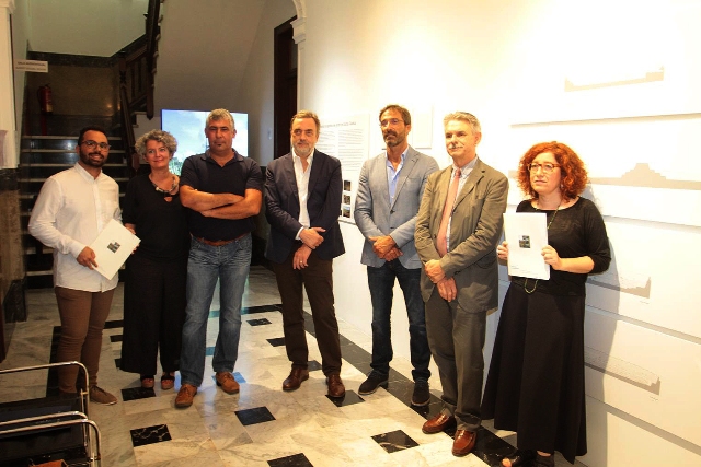 El presidente del Cabildo de Lanzarote, Pedro San Ginés, el consejero de los Centros, Echedey Eugenio; Luigi Latini, Marco Tamaro y Patrizia Boschiero, de la Fundación Benetton; Antonio Martín, jardinero...