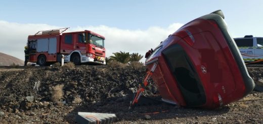 En el vehículo viajaban tres mujeres. Dos de ellas fueron trasladadas al Hospital General lanzaroteño. El accidente se produjo cerca del campo de fútbol de Yaiza.