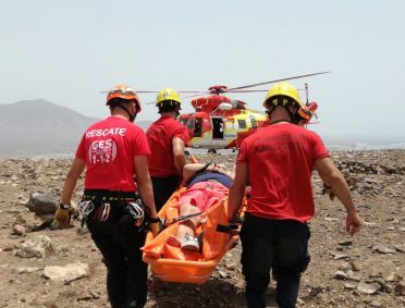 Efectivos del Consorcio de Seguridad y Emergencias de Lanzarote y el helicóptero del Grupo de Emergencias y Seguridad (GES) evacuaban de una zona de difícil acceso en la jornada de...