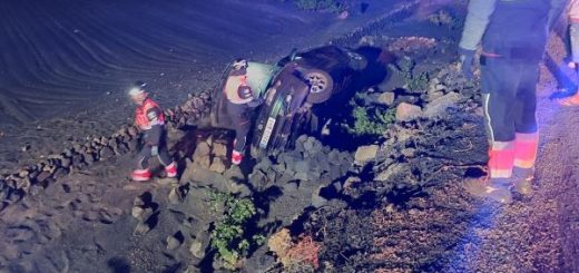 El vehículo terminó volcado sobre el techo, en un muro de piedra. Los servicios de emergencia han confirmado que solo hubo un ocupante, quien fue atendido en el lugar por una ambulancia del Servicio de Urgencias Canario.