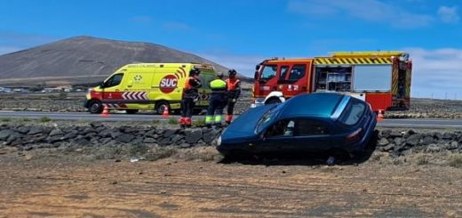 El conductor ha salido por su propio pie del interior del habitáculo y ha sido atendido en buen estado por los servicios sanitarios lanzaroteños, tras salirse de la carretera y volcar su vehículo en la LZ-1.