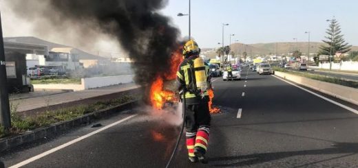El suceso se producía por la noche en un descampado de Arrecife. A la llegada de los bomberos del Consorcio, estos comprobaron que el interior del vehículo ardía en su totalidad.