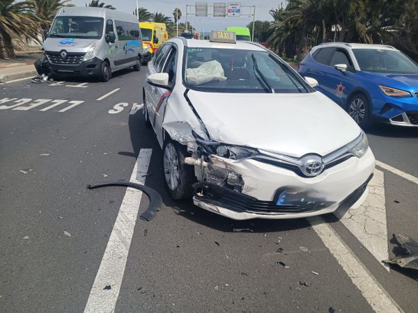 Un accidente de tráfico con tres vehículos implicados ha tenido lugar en las inmediaciones de la Terminal 1 del Aeropuerto César Manrique de Lanzarote. La colisión, ocurrida a primera hora de la tarde, ha provocado daños materiales de consideración y ha requerido una intervención conjunta de los servicios de emergencia, que se han desplazado rápidamente a la zona para atender a los afectados y garantizar la seguridad en la vía.