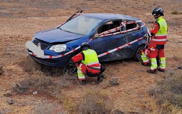 Un hombre ha resultado herido este viernes tras volcar el vehículo en el que circulaba por la carretera LZ-402, a la altura de Las Laderas (hacia Famara) en el municipio de Teguise. El accidente se ha producido sobre las 12:30 horas del mediodía, según ha informado el Centro Coordinador de Emergencias y Seguridad (CECOES) 1-1-2 del Gobierno de Canarias.