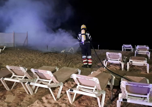Los dos incendios se produjeron en un intervalo de una hora, en la principal playa de Costa Teguise. Inicialmente, los bomberos del Consorcio de Seguridad y Emergencias fueron alertados a las 23:17 horas del viernes por un fuego que estaba afectando a una pila de hamacas situada en la playa.