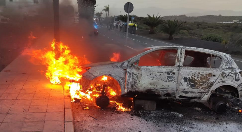 Por otro lado, también en las últimas horas ardía un vehículo por completo en la calle Tinache de Arrecife.