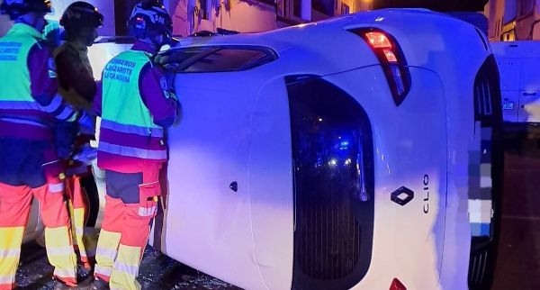 Una conductora ha sido asistida este domingo en un accidente de tráfico que tenia lugar en la calle Muyay de Arrecife. Según explican los bomberos intervinientes, cuando ellos llegaron al lugar del siniestro una mujer estaba siendo asistida en el exterior del habitáculo por los efectivos del Servicio de Urgencias Canario (SUC). Eran dos las personas que viajaban en el interior del turismo cuando se producía el vuelco lateral.