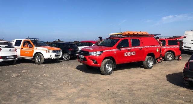 Protección Civil y Policía Local de Tinajo ayudaron a los bomberos en el traslado.