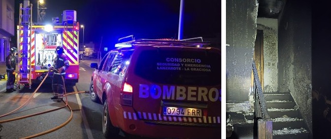 Varios vecinos han sido rescatados en un grave incendio nocturno en Arrecife