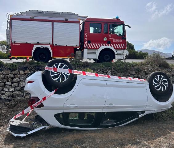 En la jornada de este sábado, día 3 de febrero, un vehículo con dos ocupantes a bordo se salía de la vía y volcaba en la carretera LZ-409, de Mozaga a La Vegueta.